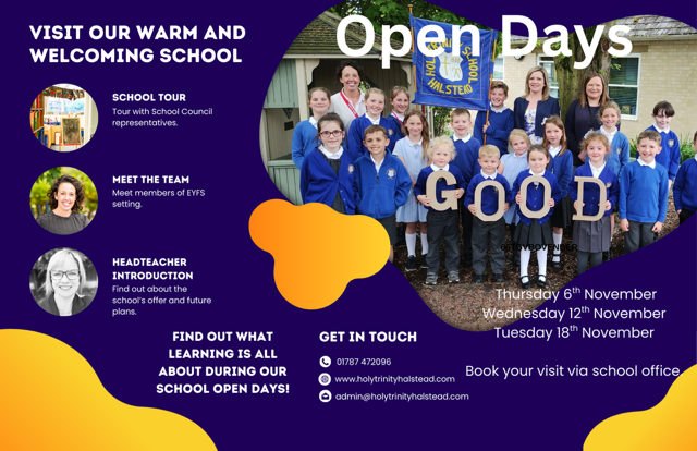 We are a happy, caring school with older children being encouraged to consider and care for the younger ones. Visitors often comment on the happy and calm atmosphere with which they are greeted as they come through the front door. Our website will give you a flavour of what goes on in Holy Trinity C of E Primary School, but I hope you will come and visit us, so you can experience first-hand our incredible spirit and all we have to offer.